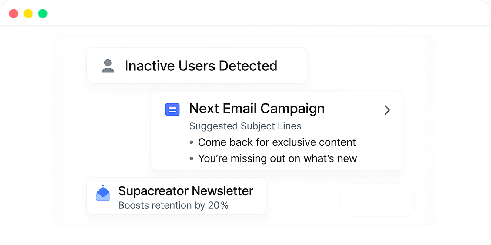 Win back and keep inactive users with AI-personalized emails, newsletters and affiliates.